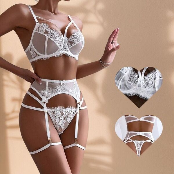 1x Set WHISPER (sutien din dantelă + jartieră din dantelă + tanga din dantelă)