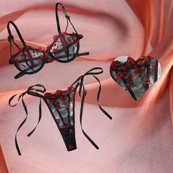 Descoperiți farmecul broderiei florale sexy pe material transparent, care adaugă o notă de feminitate și rafinament lenjeriei dumneavoastră intime.