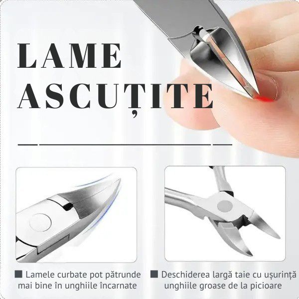 Proiectate special pentru unghiile îngroșate și încarnate, instrumentele din acest set oferă forța și precizia necesară pentru îngrijirea unghiilor dificile fără disconfort sau risc de rănire.