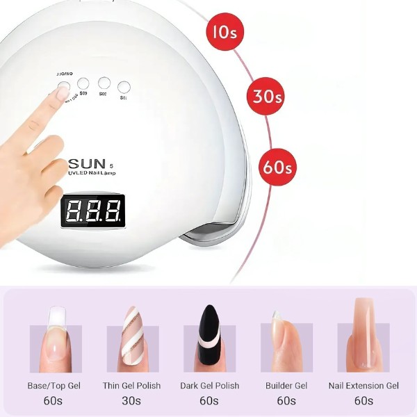 Cu 3 setări de timp (10s, 30s, 60s), puteți personaliza procesul de uscare în funcție de tipul de gel și nevoile personale. Senzorul inteligent se activează automat când mâinile sau picioarele sunt plasate sub lampă, asigurând o experiență fără probleme de fiecare dată.